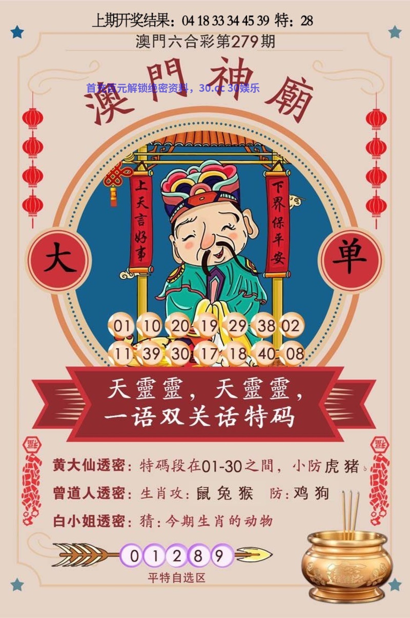 284期:恭喜发财【三码中特】每期包中