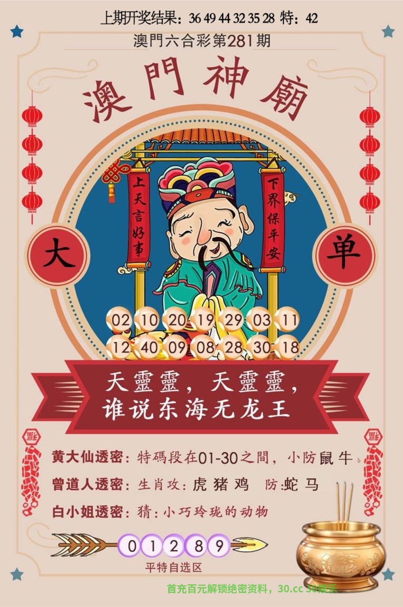 280期五肖虎猴狗蛇开:鼠42中